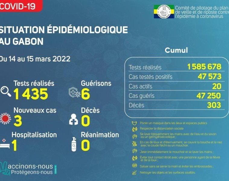 Coronavirus au Gabon : point journalier du 15 mars 2022
