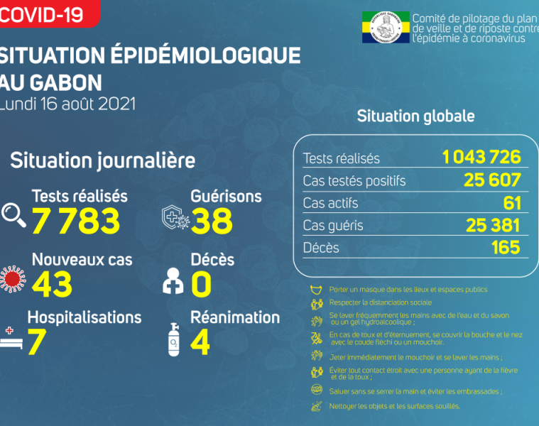 Coronavirus au Gabon : point journalier du 16 août 2021
