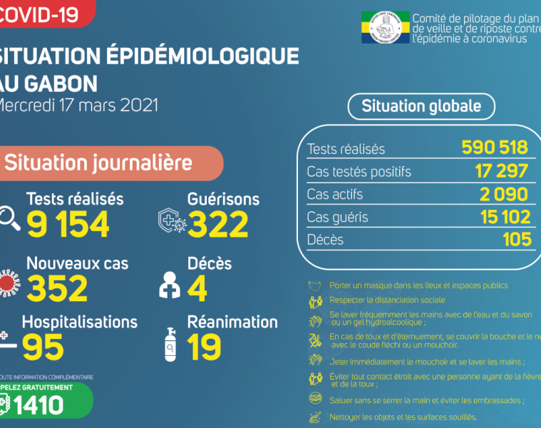 Coronavirus au Gabon : point journalier du 17 mars 2021