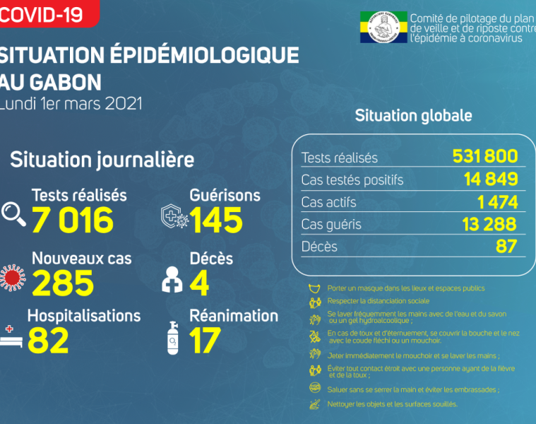 Coronavirus au Gabon : point journalier du 1er mars 2021