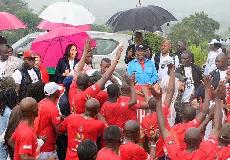 Ali Bongo Ondimba, a donné ce samedi le top départ du 10 km de Franceville. C’est en compagnie de son épouse Sylvia Bongo Ondimba que le Chef de l’Etat a, du haut de l’estrade de départ, sonné la cloche du coup d’envoi du RUN IN MASUKU.