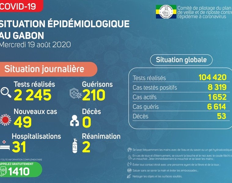 Gabon Matin vous livre le point journalier du Comité de pilotage du plan de veille et de riposte contre l’épidémie à Coronavirus au Gabon du 19 août 2020.
