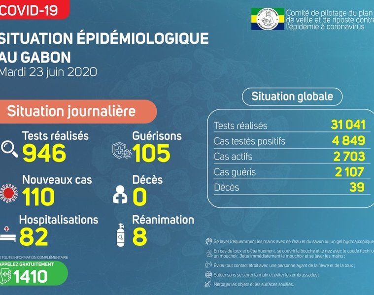 Gabon Matin vous livre le point journalier du Comité de pilotage du plan de veille et de riposte contre l’épidémie à Coronavirus au Gabon du 23 juin 2020.
