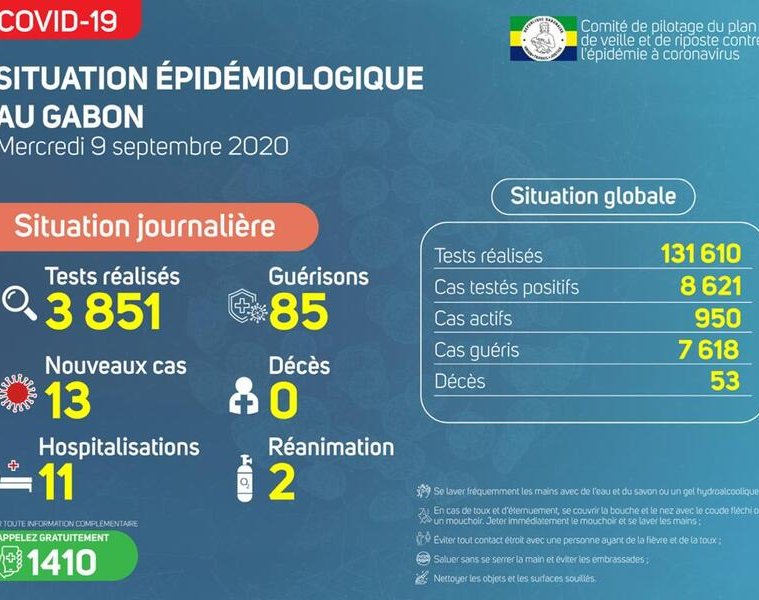 Gabon Matin vous livre le point journalier du Comité de pilotage du plan de veille et de riposte contre l’épidémie à Coronavirus au Gabon du 9 septembre 2020.